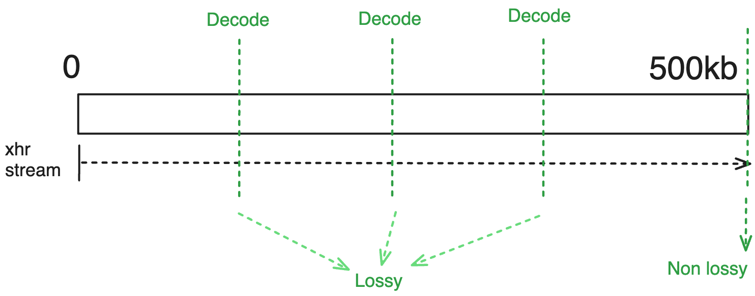 To answer the question of how many decoding levels will occur, it totally depends on the initial data that is downloaded and how the stream progresses. But at any given time when the data is downloaded, we check the progress against the above levels and decode the image to the relevant resolution if possible. If an error is thrown or the image is not decoded, we simply wait for the next progress event to occur.